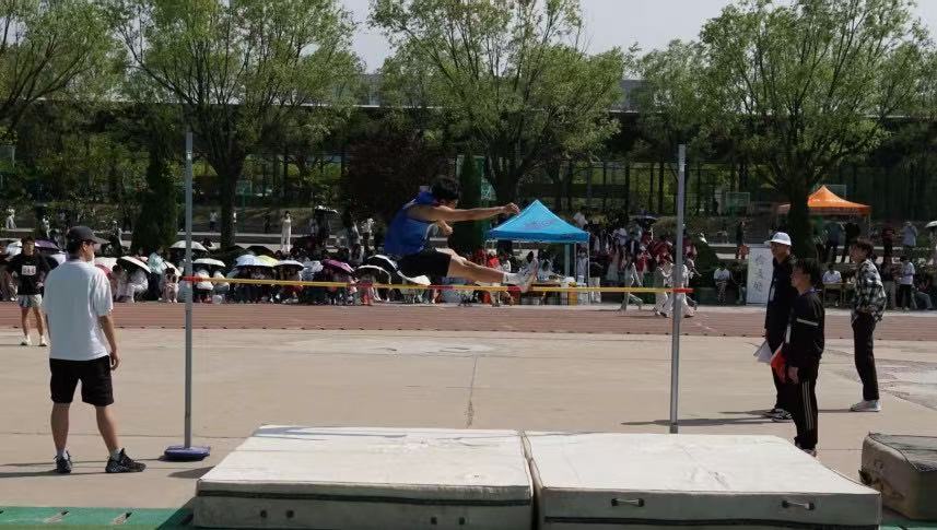 跳远项目中,选手们奋力助跑,在踏板上一跃而起,身体在空中舒展,如同展翅的雄鹰,向着更远的目标飞去。他们的每一次跳跃,都凝聚着力量与技巧,展现出青春的活力与风采。