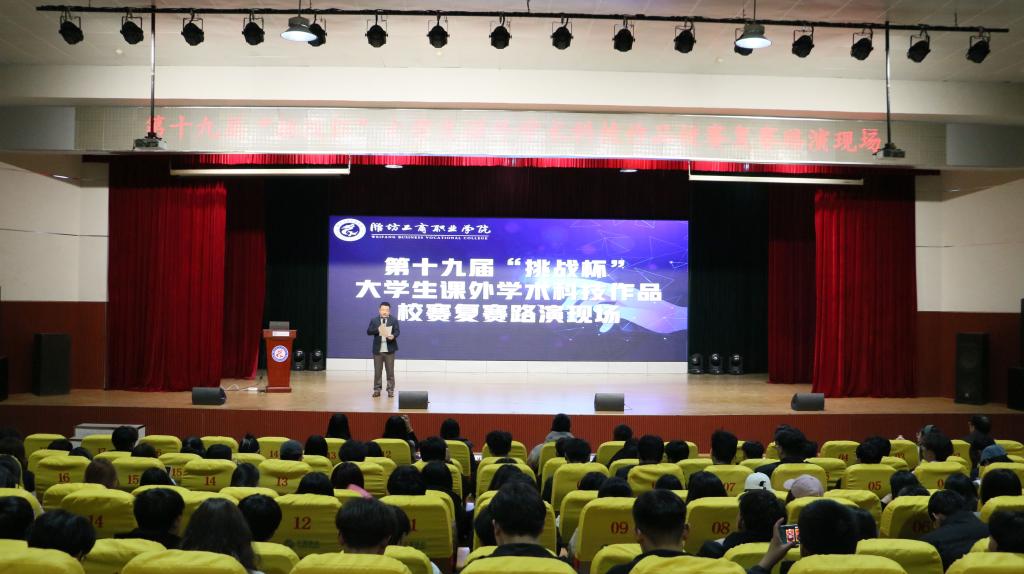 为深入贯彻习近平新时代中国特色社会主义思想与科技创新论述,激励大学生实践创新精神,3月28日,潍坊工商职业学院第十九届“挑战杯”大学生课外学术作品竞赛路演在第一报告厅拉开帷幕。各学院党团书记、专职辅导员、各二级学院指导教师,项目团队成员近300人参加。本次活动由学生处王振太老师主持。