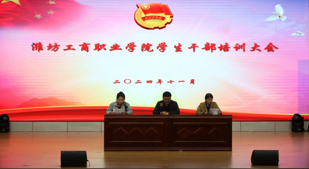 为加强学生组织建设,提升学生干部专业素养和综合能力,提高学生会成员的责任意识和纪律意识,11月22日潍坊工商职业学院在第一报告厅召开学生干部培训会。学生处处长柴元昌老师、团委副书记乔俊杰老师、学生处李晓迪老师、校学生会全体成员、社团管理部全体成员、各二级学院学生会第一及第二负责人出席本次培训会,会议由李晓迪老师主持。