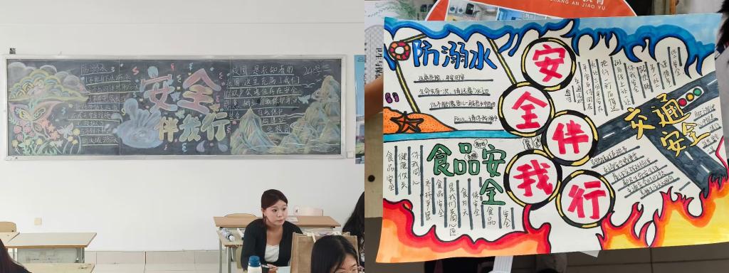 设计校园安全主题黑板报。各二级学院充分发挥学生的自主创新能力,围绕不同的“安全教育”主题重点进行安全宣传教育,向师生展示了一幅幅图文并茂、内容丰富的板报作品。