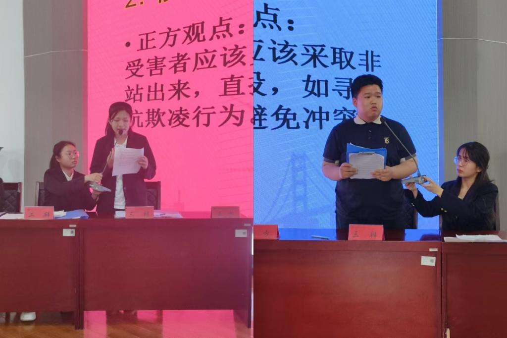 近年来,校园欺凌现象日益成为全社会高度关注的问题,为了提高学生们对校园欺凌的认识,增强防范意识,锻炼学生提升综合素质,潍坊工商职业学校于5月23日在第二报告厅举办了以“反对校园欺凌,争做文名学生”为主题的辩论赛活动,本次辩论赛由学生处团委主办,经贸学院承办,具体由王振太、管恩丽、管刘晗老师组织实施。