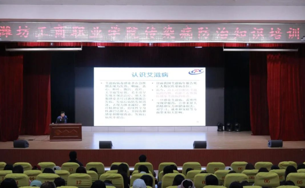 为进一步做好我校传染病防控工作,提高广大师生传染病防范意识,5月10日下午在第一报告厅举办传染病防控培训会,我校有幸邀请到诸城市疾控中心副主任、副主任医师杨鹏,为广大师生开展学校重点传染病防控知识讲座,出席本次培训会的有学生处副处长董明冉以及各二级学院学生代表共700人,会议由学生处副处长董明冉老师主持。