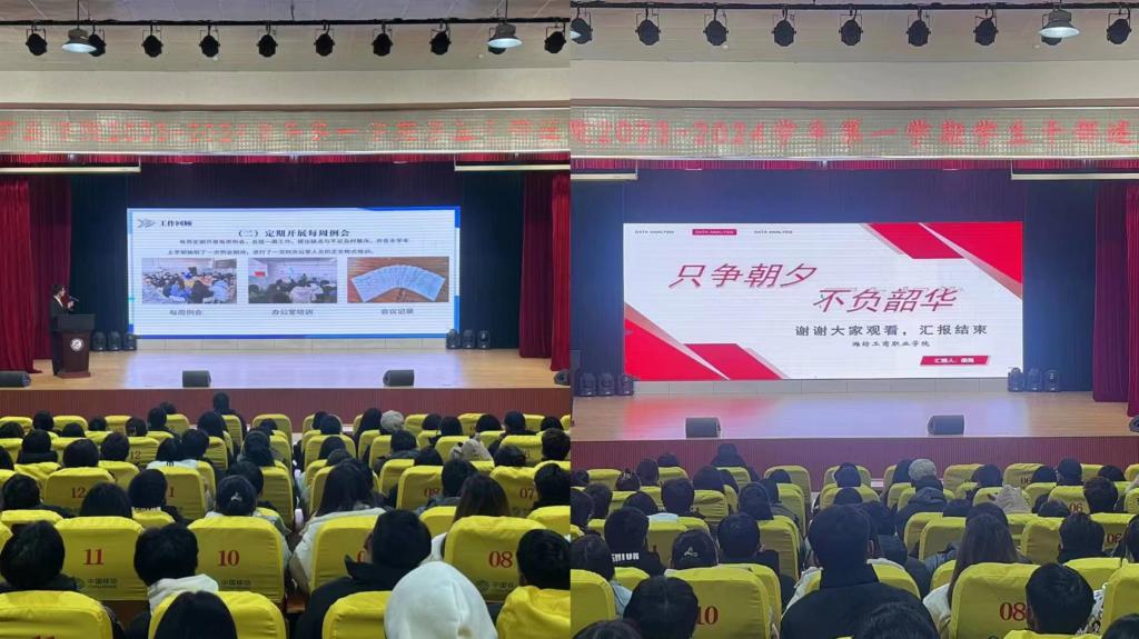 为进一步加强学生组织建设、推动学院学生会工作再上新台阶,我校于12月19日晚在第一报告厅召开2023-2024学年第一学期学生干部述职评议大会。学生处处长柴元昌、学生处李晓迪老师以及院学生会全体成员出席了本次会议。