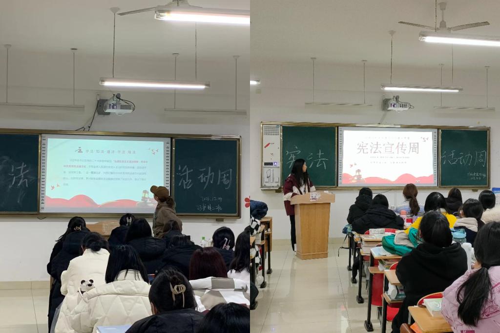 开展主题班会。学院各班组织开展“弘扬宪法精神”主题班会,讲解宪法的历史、内容和意义,使同学们了解到宪法的重要性,明确作为当代大学生在推动社会主义法治强国建设过程中的重要责任,在班级内传播良好的班风学风。