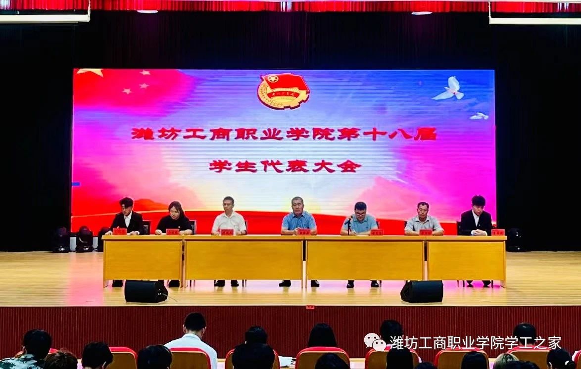 9月22日下午,潍坊工商职业学院第十八届学生代表大会暨第十六届社团代表大会在第一报告厅隆重举行。参加本次会议的有党委副书记、副校长刘国庆同志,学生处处长柴元昌同志,副处长董明冉、辛玉刚同志,团委副书记乔俊杰同志,学生处、团委老师,各二级学院党团书记及学生代表共310人,大会由学生处处长柴元昌同志主持。