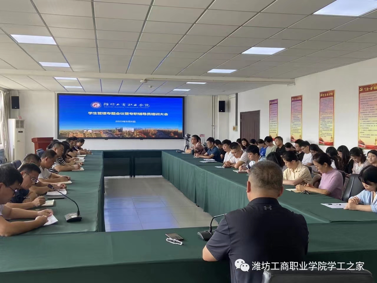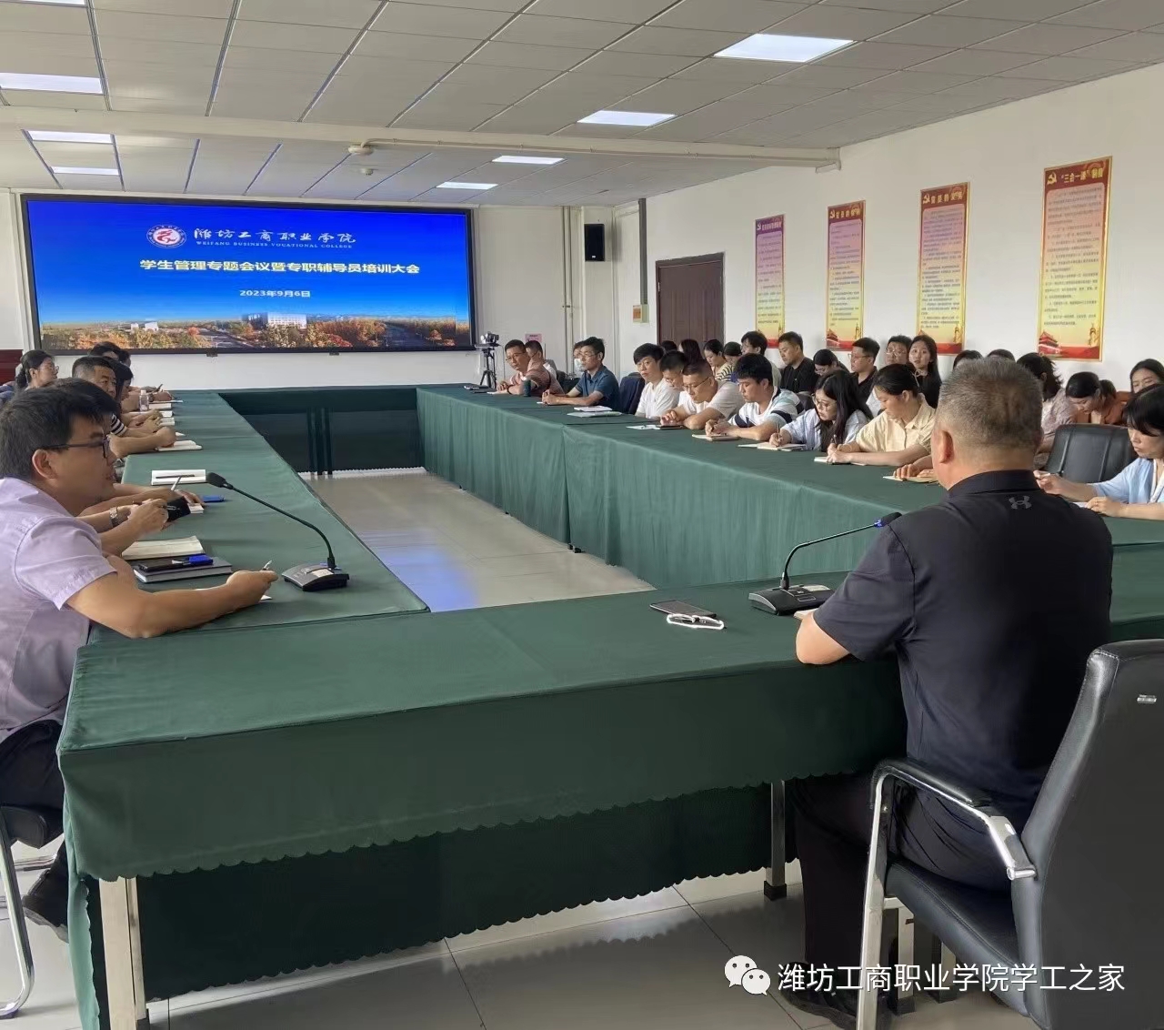 柴处长结合自己工作经历及相关事例,从辅导员职责、班级管理经验两个方面跟大家做了交流,并对近期学生管理工作做了部署安排。