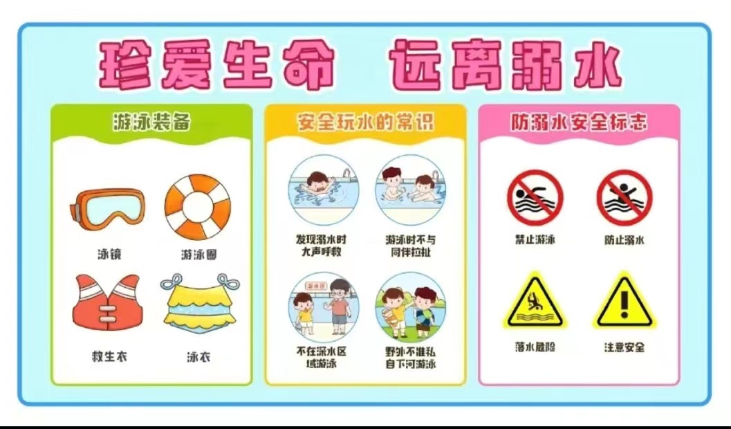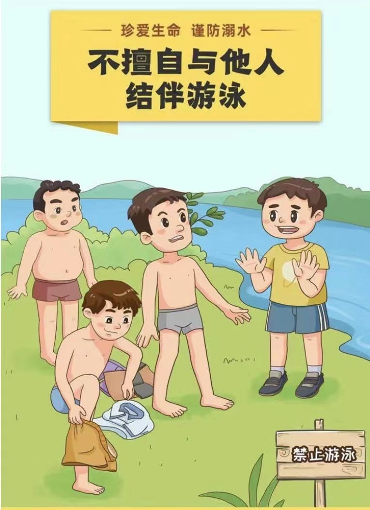 三、家长务必要重视孩子游泳(玩水)安全教育。禁止孩子私自下水游泳;禁止孩子擅自与他人结伴游泳;禁止孩子在无监护人或老师带队的情况下游泳;禁止孩子到无安全设施、无救护人员的水塘水库游泳;禁止孩子到不熟悉的水域游泳;禁止擅自到河流、山塘、水沟等危险地方玩耍。夏季需要游泳,应该到安全,正规的游泳池游泳,并且必须要有监护人陪同。在游泳前做好相应的准备活动,以防止溺水事件的发生。