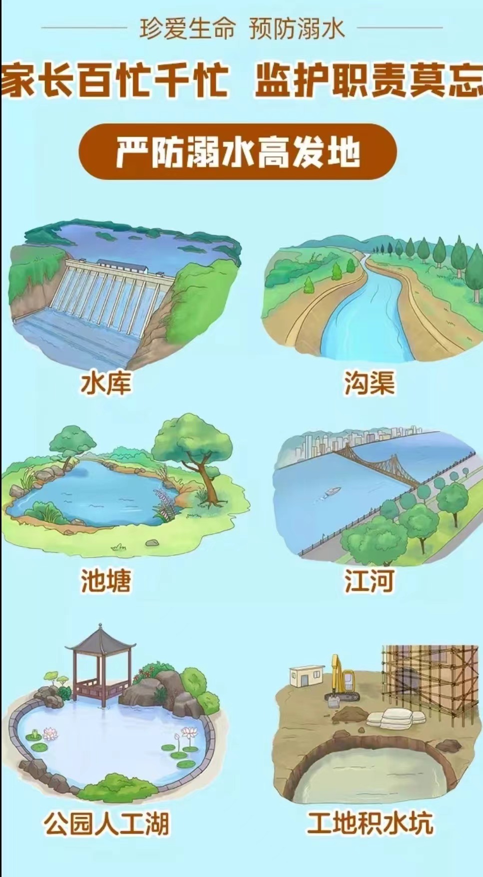 五、家长要自觉履行自己的职责。管好自己的孩子,切勿有“麻痹思想”和“侥幸心理”的产生。并且教育孩子相互监督,对于那些违反纪律,私自外出游泳或到渠边、河边、水塘(坑)边玩耍的同学,教育孩子要果断抵制并劝阻,并及时向老师和家长报告。