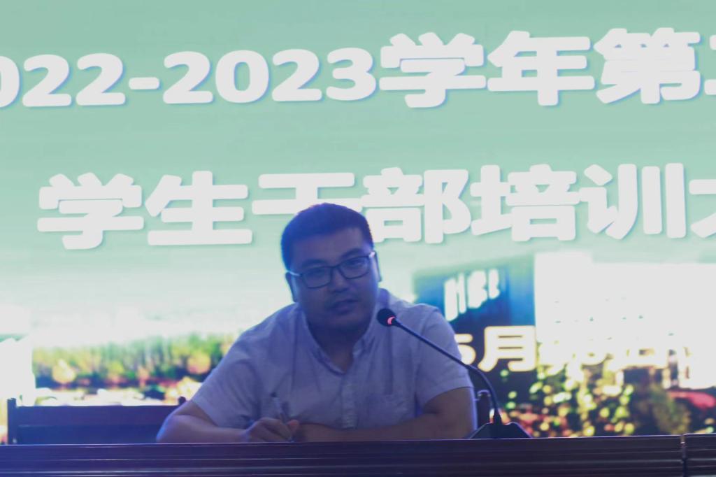 为进一步提升学生干部的综合素质和工作能力,增进学生干部之间的交流联系,推进学生管理工作有序开展,潍坊工商职业学院于5月30日下午在第一报告厅召开2022-2023学年第二学期学生干部培训会议。参加本次会议的有学生处处长柴元昌老师,学生处李晓迪老师及院学生会全体成员。