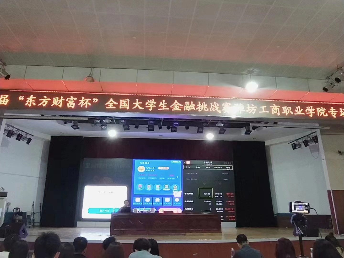 在本次潍坊站的活动中,我校作为重点院校予以推动。会上杨盛鹏总监对“第九届‘东方财富杯’全国大学生金融挑战赛”赛事情况,包括活动概述、赛事规则、比赛奖励等方面为同学们进行了详细讲解,并重点讲解了比赛过程中的具体操作和具体方法。