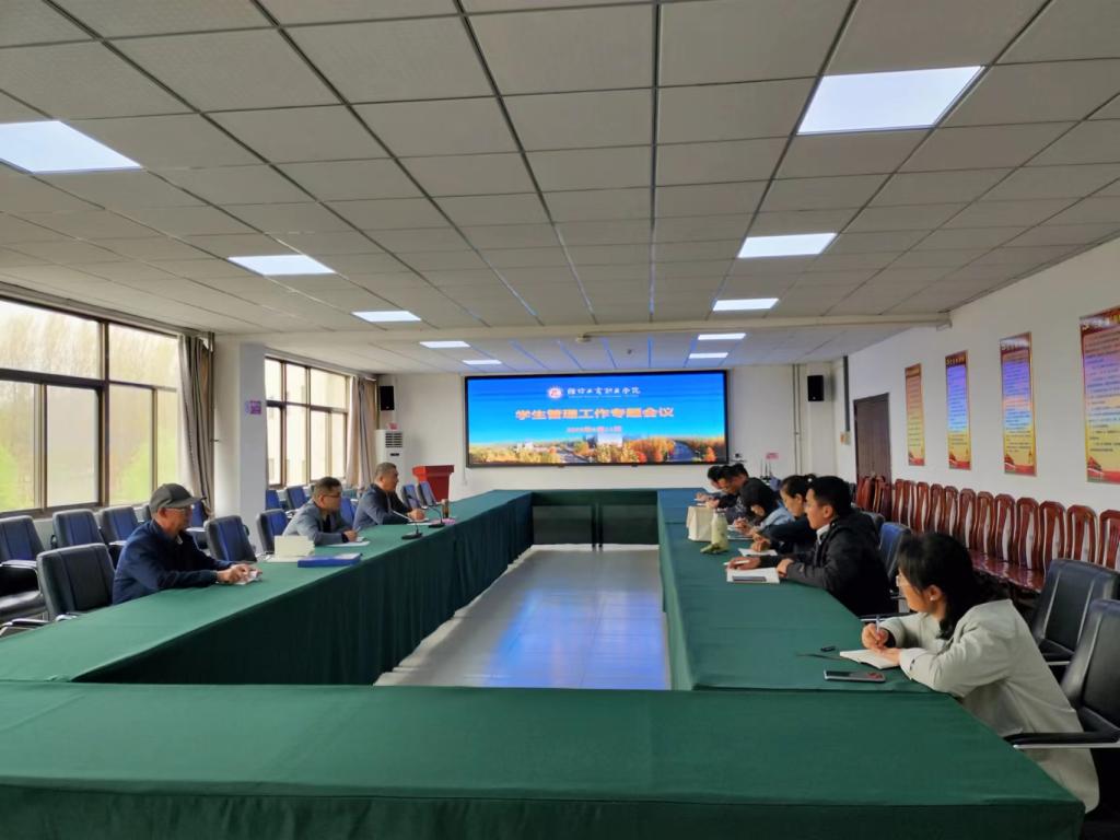 4月11日下午,为全面落实立德树人根本任务,推动学校学生工作精细化管理,我校在图书信息中心321会议室召开了学生管理工作专题会议。出席会议的有党委副书记、副校长刘国庆、安保处处长王培周、学生处处长柴元昌、副处长董明冉、团委书记朱耀秀以及各二级学党支部书记。会议由柴元昌主持。