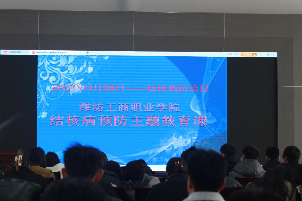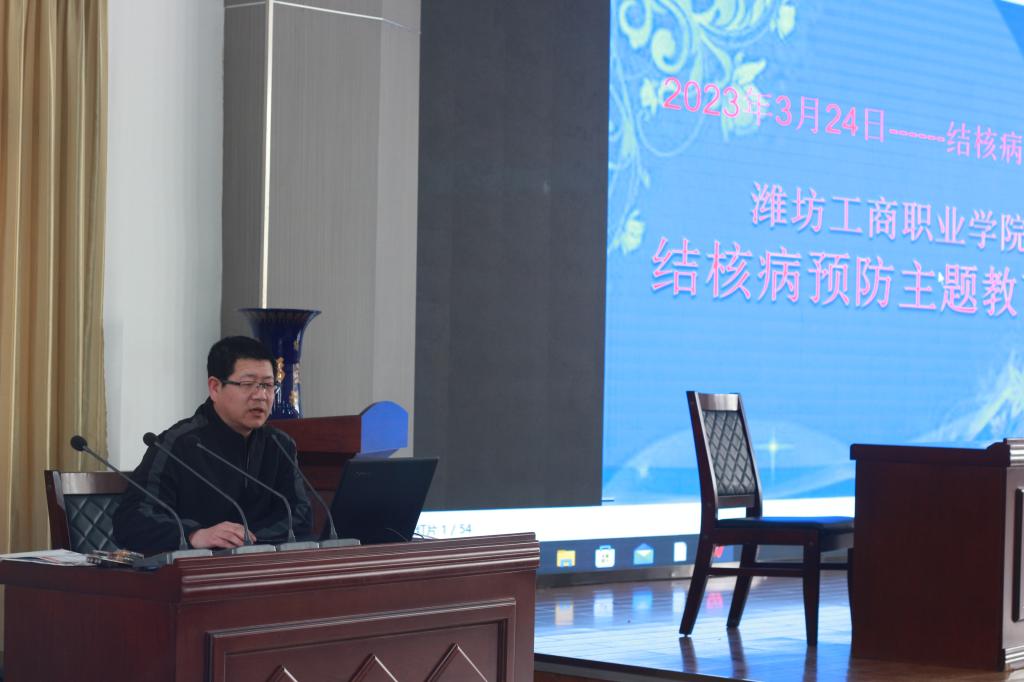 为提高我校学生对春季传染病、结核病的正确认识,增强预防和自我保护意识能力,潍坊工商职业学院于3月24日下午2点在第二报告厅召开2023年春季预防传染病及肺结核专题报告会。参加本次会议的有学校医务室刘勋峰院长、部分教师代表、部分学生参加。