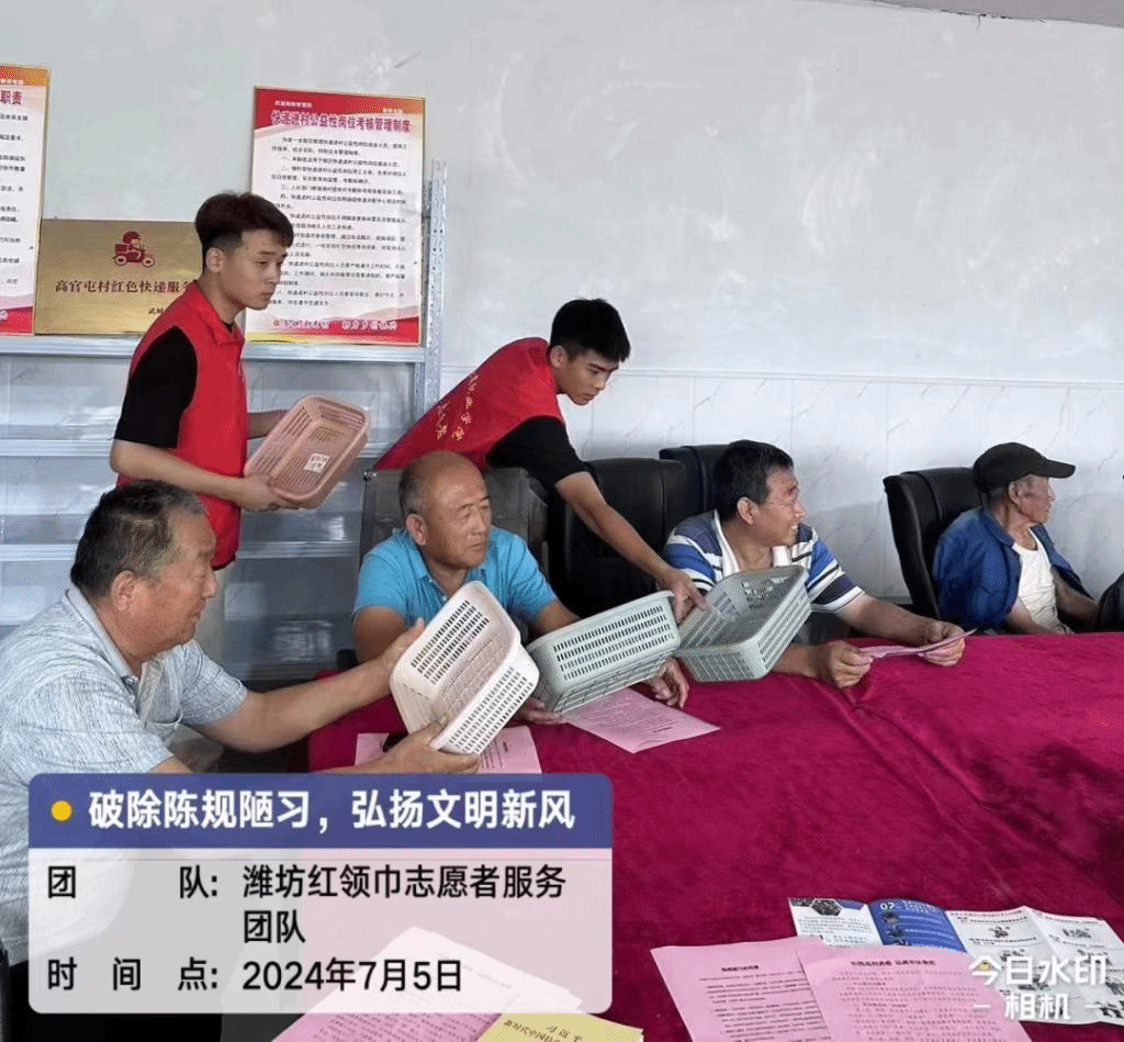 队员们参与到文明乡风建设中,引导村民们自觉抵制陈规陋习,倡导文明节俭、喜事廉办、丧事简办、厚养薄葬文明新风尚,让广大居民群众充分了解了移风易俗的内涵与意义,让“破陈规、除陋习、讲文明、树新风”理念入脑入心。
