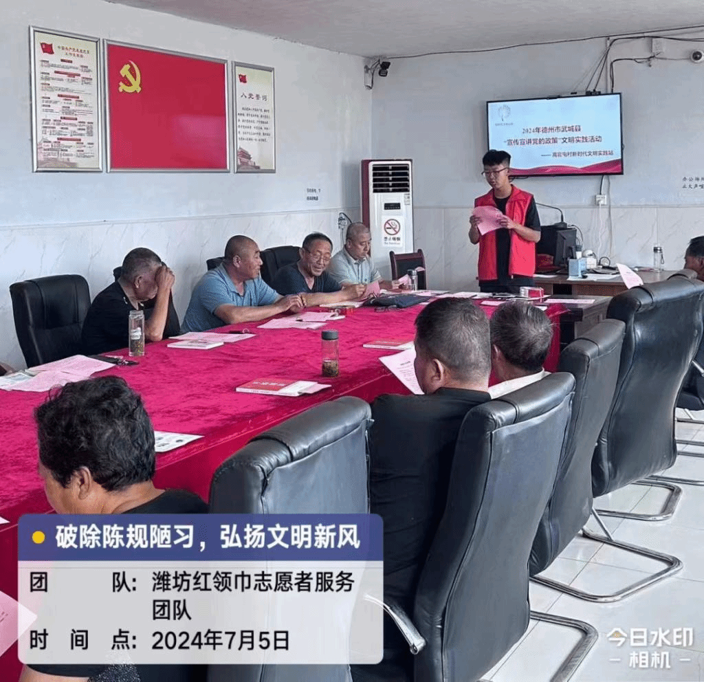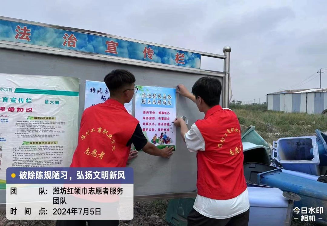 为深入推进移风易俗工作,形成破除陈规陋习、崇尚文明新风的良好氛围,7月5日下午,机电与汽车工程学院红领巾志愿队来到德州市武城县高官屯村开展弘扬破除陈规陋习,弘扬文明新风志愿活动。