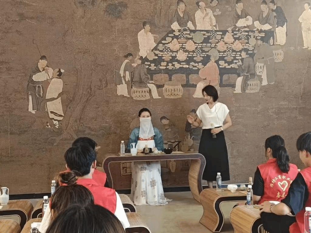 除了实践学习,茶艺师带领志愿者们体验如何制作茶。从采摘新鲜的茶叶到研磨成细腻的粉末,每一个步骤都充满了乐趣和挑战。