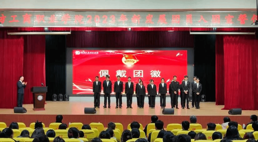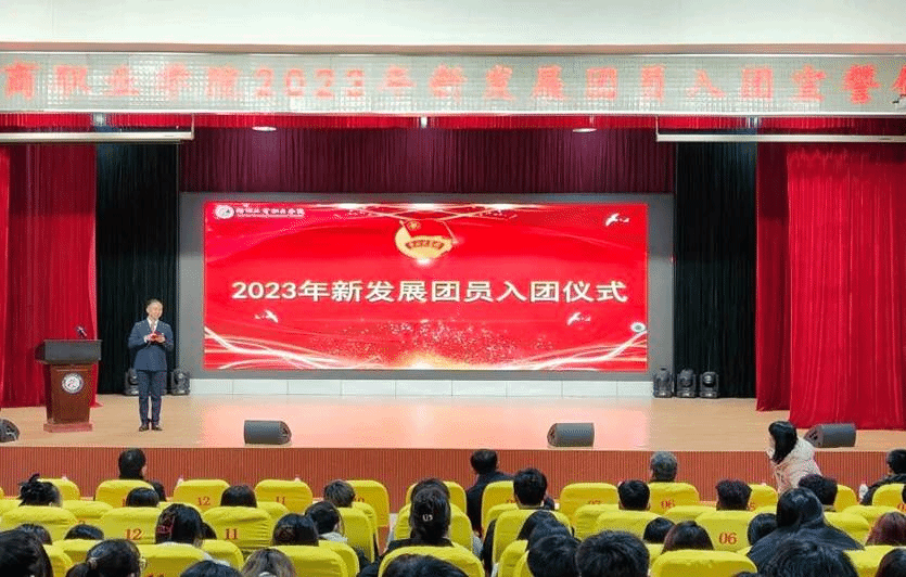 峥嵘百年路,奋发新时代。为加强我校共青团队伍建设,激励青年坚定理想信念,激扬青春力量,激发作为共青团员的光荣感和责任感,吸收一批优秀青年学子加入共青团组织,为团组织增添新的血液,增添新生力量。2023年12月4日下午,我校在第一报告厅举行了新团员入团宣誓仪式。整个仪式由团委孙淑蕾老师主持,共有九项内容。诸城市团市委书记李季、潍坊工商职业学院党委副书记、副校长刘国庆、学生处处长柴元昌、团委书记朱耀秀出席了本次仪式,团委全体老师、二级学院党团书记、部分学生干部、老团员代表、以及本年度新发展的435名团员也参与了本次仪式。