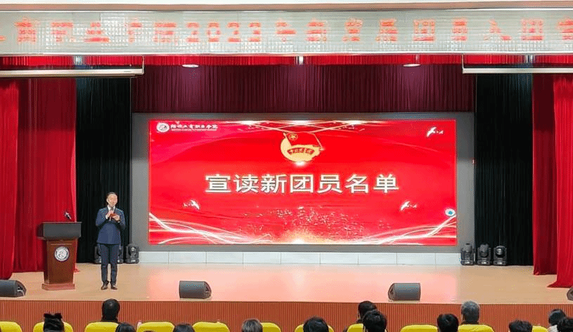 我校2023年共有435名同学光荣成为共青团员,校团委孙淑蕾老师宣读新团员名单。