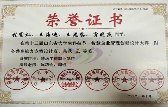 我一直在以更高的标准要求自己,除了担任团支书外,我还担任了组织委员,组织了班里的各种文体活动,不断提高自己的组织协调能力。不仅如此,我还积极参加“大学生创新创业大赛”、“智慧企业管理能力培养对抗赛”、“财务共享能力方案设计赛”等比赛,都取得了不错的成绩。