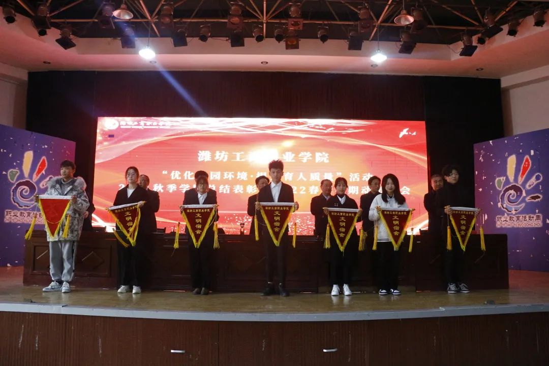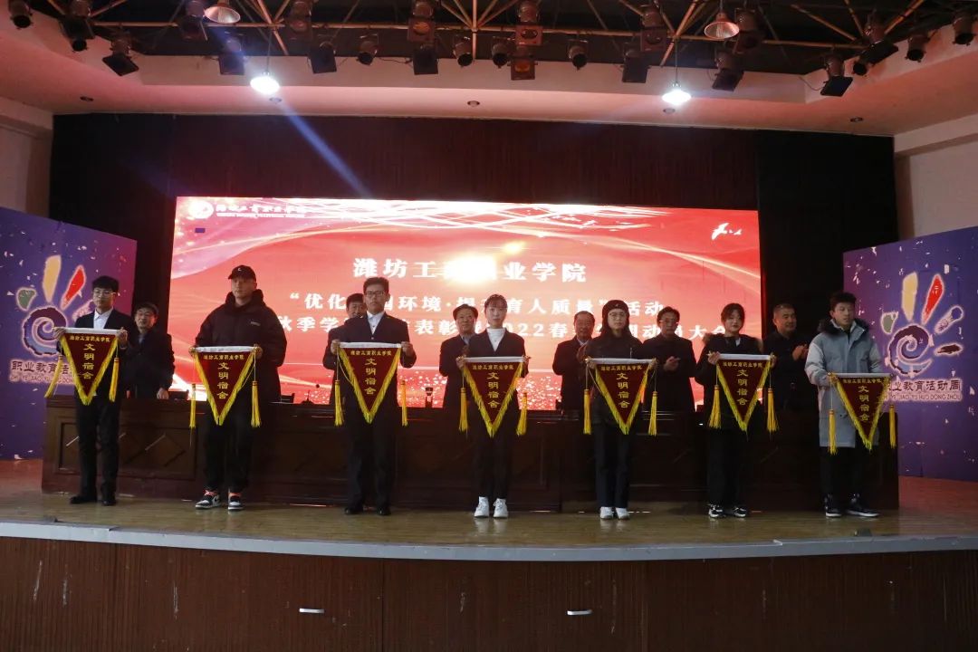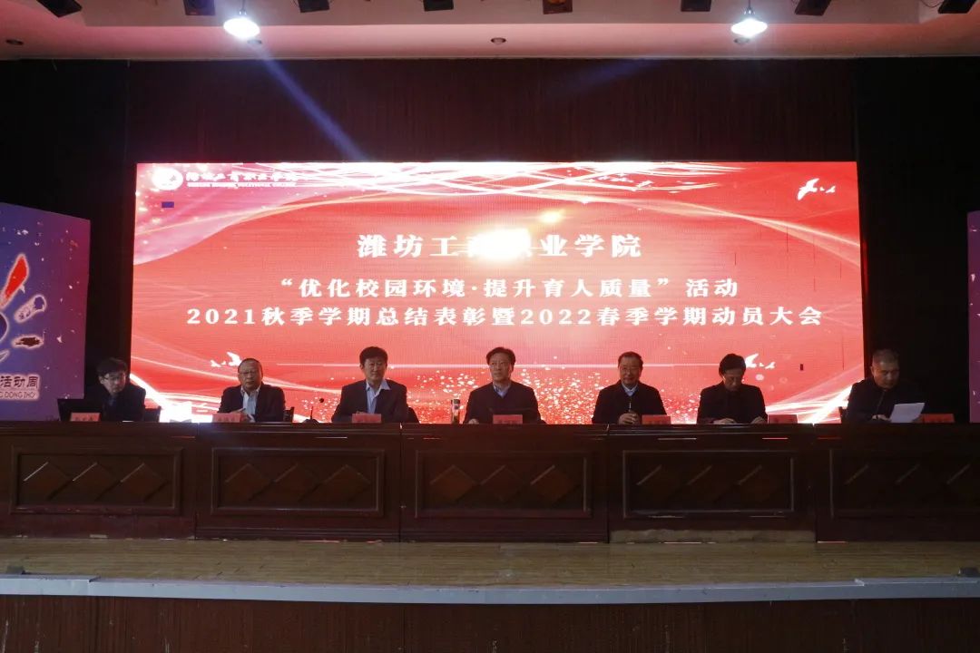会议第一项议程请学校党委书记郑志松同志宣读潍坊工商职业学院2021年开展“优化校园环境、提升育人质量”活动获奖名单。按照《潍坊工商职业学院“优化校园环境、提升育人质量”活动实施方案》的评选要求和各学院实际开展情况,经过多轮综合考评,共评选出:文明宿舍110个、先进班集体32个,优秀学院3个。