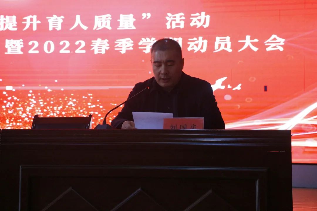 为全面落实立德树人根本任务,激励学生遵纪守法、奋发向上,推动学校校纪学风建设。2月24日下午我校在图书馆第一报告厅开展了“优化校园环境、提升育人质量”活动2021秋季学期总结表彰暨2022春季学期动员大会。出席此次活动的有校务委员会主任张绍秋,校长王传旭,校党委书记郑志松,副校长周平,副校长、经济学校校长唐德良,副校长郭素森及各学二级学院院长、副院长,党团书记,大一大二辅导员代表和各班班长、团支书、获文明宿舍奖的宿舍舍长。本次会议由党委副书记副校长刘国庆主持。
