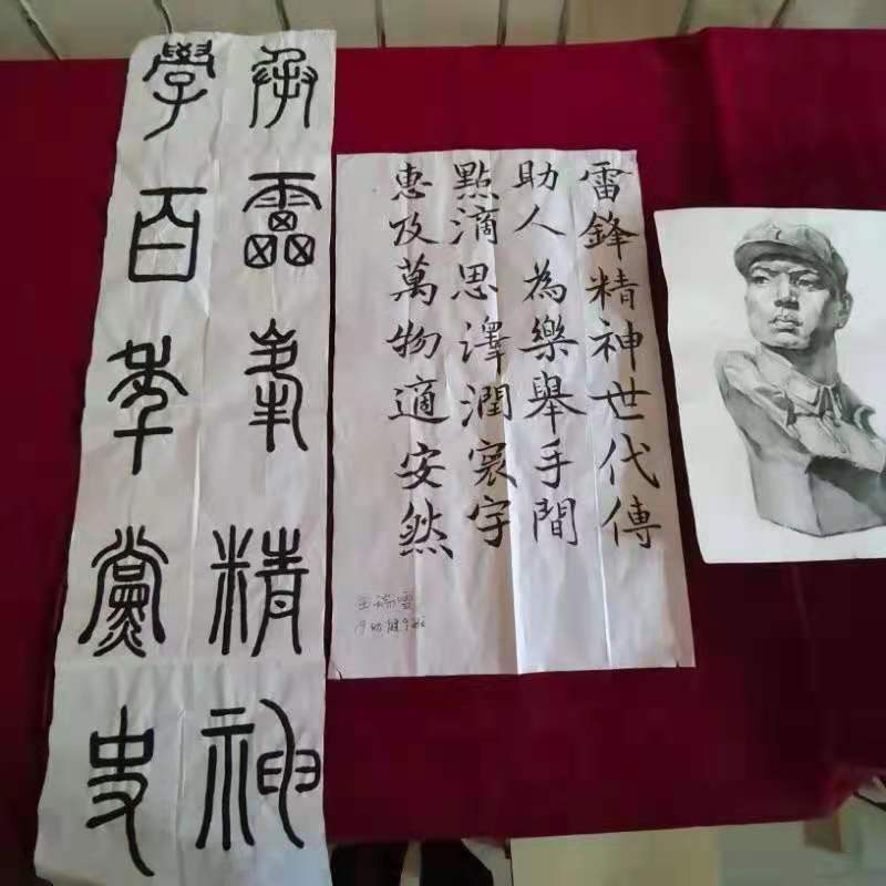 为贯彻落实习近平总书记关于学习雷锋的重要指示精神,进一步弘扬“奉献、友爱、互助、进步”的志愿精神,广泛进行雷锋事迹、雷锋精神和雷锋式模范人物的宣传教育,充分发挥当代青年不忘初心、不负历史,勇担责任,砥砺前行的示范带动和价值引领作用,在学雷锋活动月中,我校开展了“我心目中的雷锋”投稿活动,同学们通过书法、绘画的形式表达出了自己心中的雷锋形象。