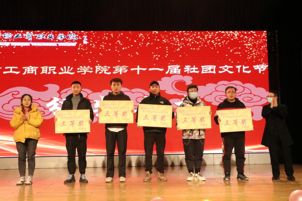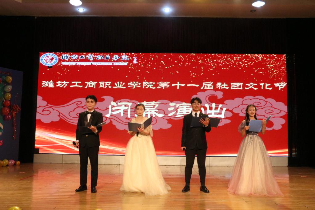 12月17日下午,潍坊工商职业学院第十一届社团文化节闭幕式演出暨颁奖典礼在第一报告厅隆重举行。学生处处长、团委书记王卫同志、学生处副处长董明冉同志、团委副书记乔俊杰同志出席本场晚会,参加晚会的还有各院系党支部书记、团总支书记,及各社团负责人、社团文化节各类活动获奖人员和各院系学生代表。