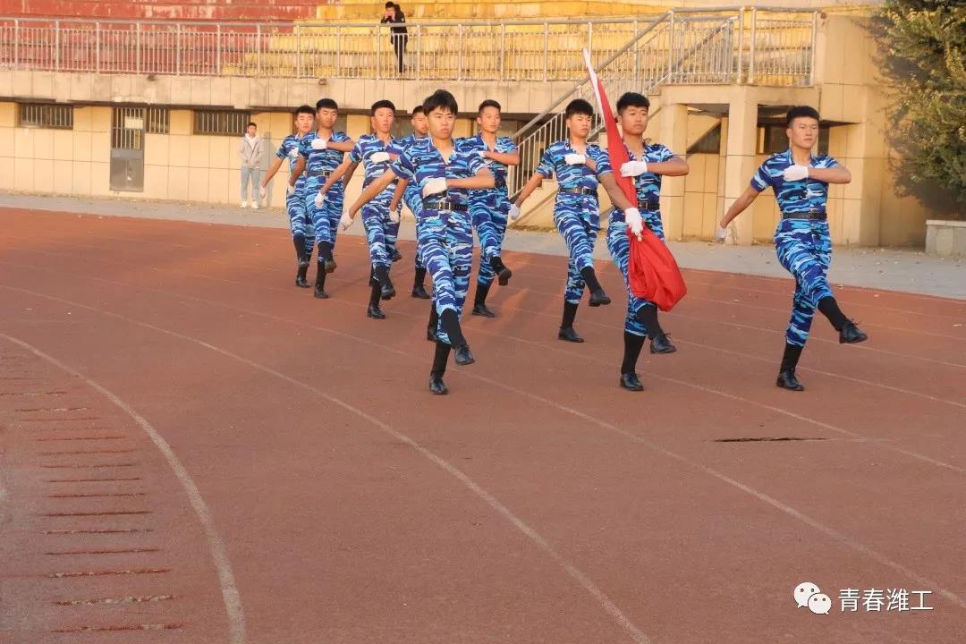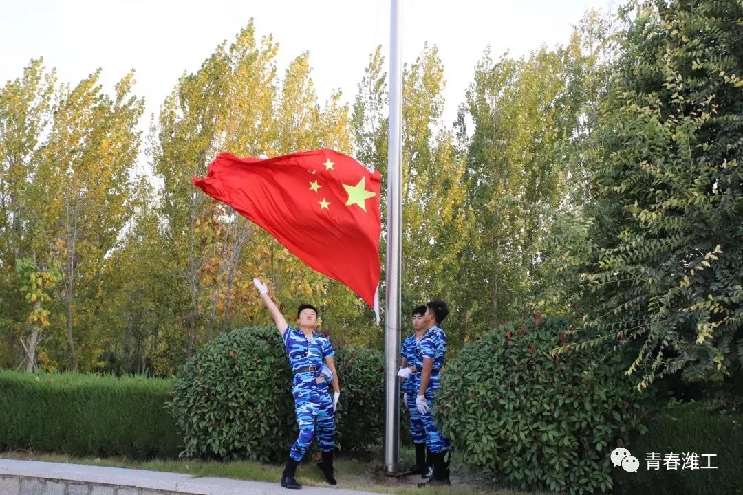 国旗护卫队迎着朝阳、拥着国旗,迈着整齐统一的步伐,精神抖擞、昂首挺胸地走向升旗台。