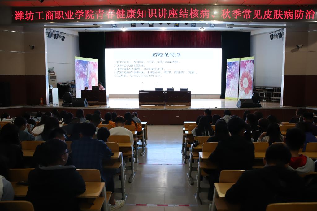 秋季是收获的季节,同时也是呼吸道传染病高发季节,为了增强学生对秋季传染病的预防保健意识,让同学们远离传染病,健康快乐成长。10月10日下午,我院特邀诸城市皮肤病防治站的李宁主任和诸城医学美容中心王凤英主任在第一报告厅为800多名大一学生开展了青春健康系列知识讲座之“秋季常见传染病预防”专题讲座,讲座由心理健康教育中心主任朱耀秀主持。
