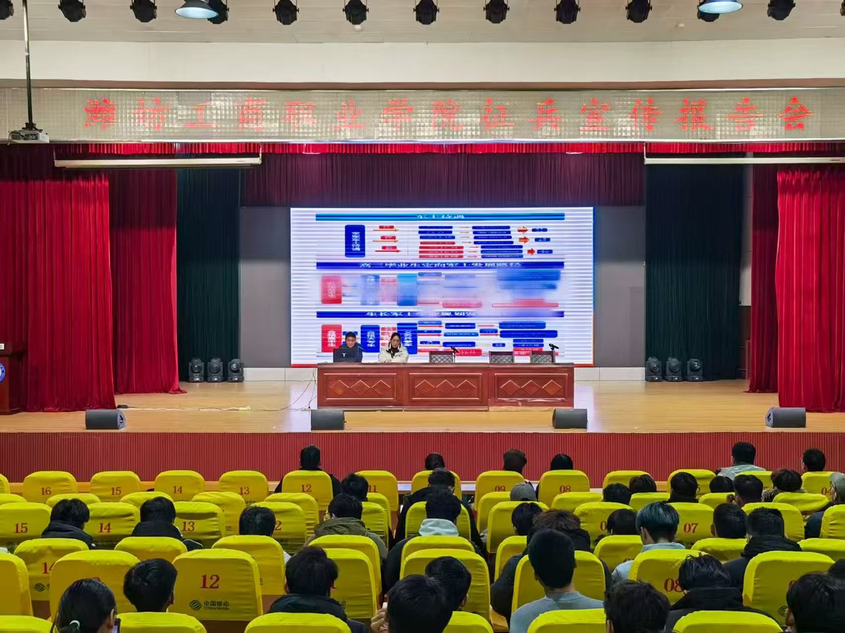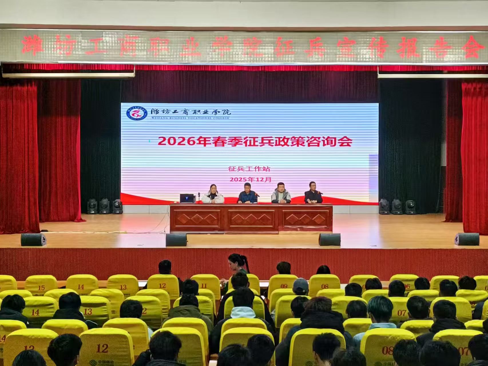 为深入贯彻2026年春季征兵部署,切实解答学生参军入伍疑问,12月12日,潍坊工商职业学院于第一报告厅成功举办2026年春季征兵政策咨询会。学生处副处长董明冉老师、学生处王振太老师及部分学生代表共同出席了此次会议。
