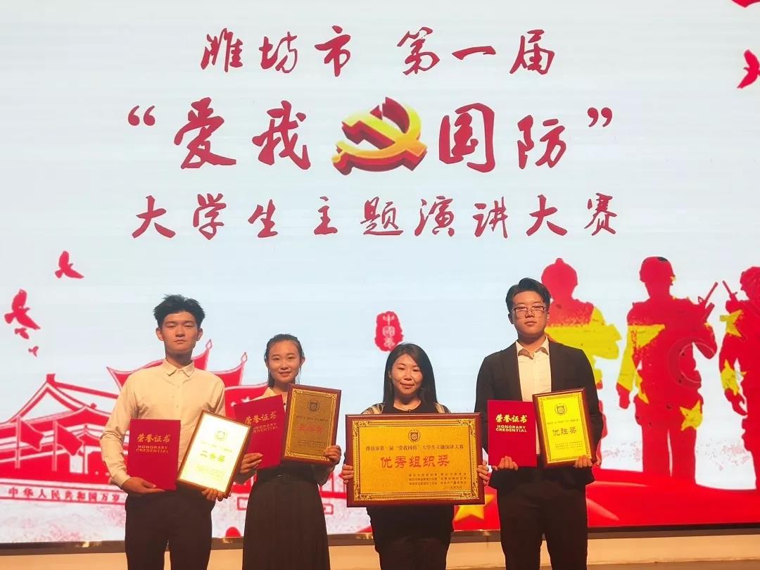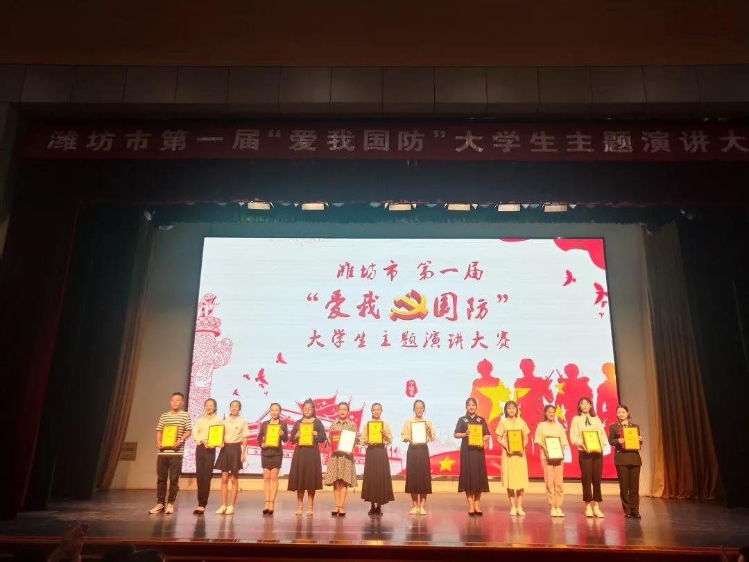 9月5日,潍坊市第一届“爱我国防”大学生主题演讲比赛在潍坊学院隆重举行,来自潍坊的近20支高校队伍齐聚一堂,用自己的心声唱响爱我国防,强我中华的主旋律。此次活动学院高度重视,党群工作部、学生处、团委等部门通力协作,在暑假期间组织精干师生撰写演讲稿件,制作演讲背景视频,加班排练,力争以最好的精神面貌迎接比赛。
